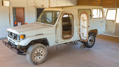 We had lunch under big sheds near where all the radioactive remains were finally and properly buried before 1995 when the land was handed back to the traditional owners, not that they want to live on the affected land to this day. All the equipment used to bury contaminated material had to also be buried and nothing could leave Maralinga.